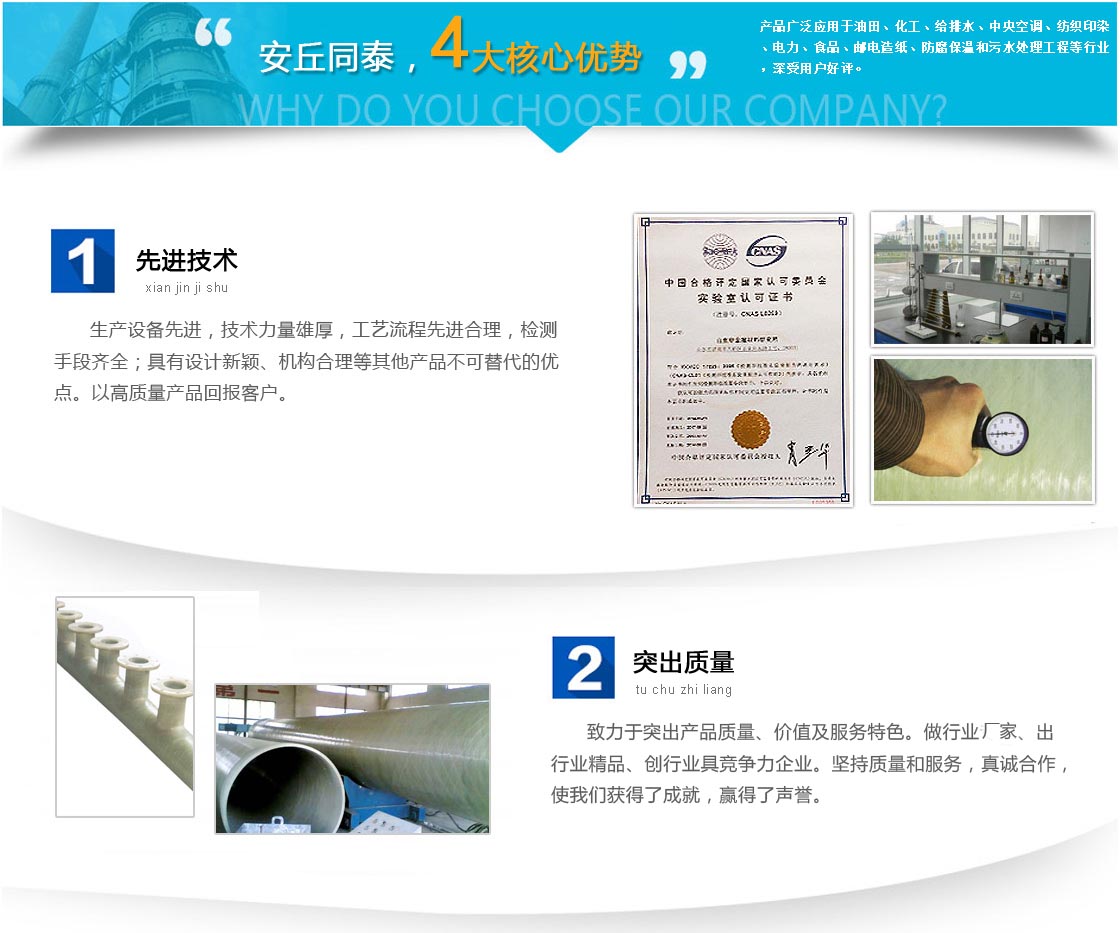 主導產品:玻璃鋼管道 玻璃鋼夾砂管道 玻璃鋼罐 夾砂玻璃鋼管道 玻璃鋼排水管道 玻璃鋼電纜管道 玻璃鋼環保設備 玻璃鋼冷卻塔